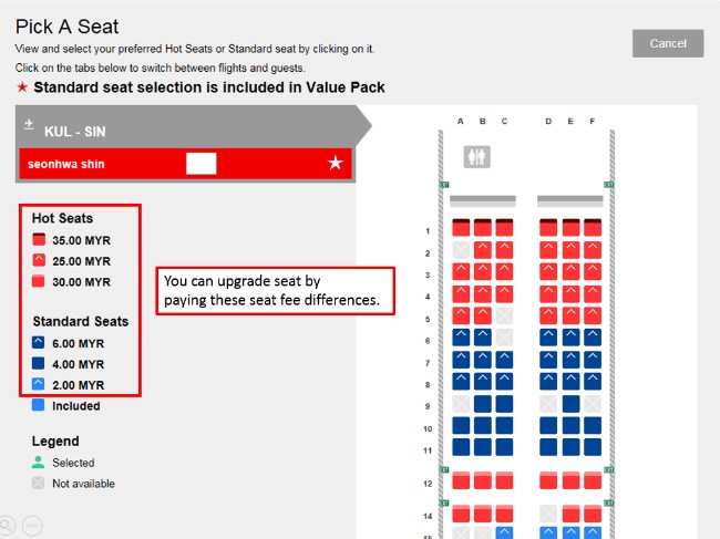Related : Air Asia Free Seat / This is the one of the air asia hot seats.additional payment is needed to book this seat.good legroom and comfortable seat..
