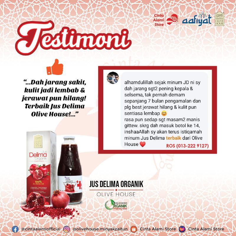 Kajian menunjukkan zat fitokimia sangat baik untuk jantung serta mampu mengawal paras darah tinggi seseorang. Semasa mengandung inilah masalah utama saya. Ia boleh membantu mengurangkan tekanan darah tinggi, yang merupakan berita baik jika anda berada di peringkat akhir kehamilan atau menghidap praeklampsia apabila tekanan darah anda mungkin akan dinaikkan. Khasiat buah delima untuk ibu mengandung dan orang biasa memang banyak, daku sendiri pun masih dalam proses ingin tahu. Saya guna pati delima jenama gulsan. * meningkatkan kecergasan tubuh badan semasa hamil. Antara nutrisi lain yang terkandung dalam buah delima ialah khasiat zat fitokimia. Sekadar berkongsi.kedai pemborong mehnaz ada jual jus pati delima gulsan.sebtl rm12, sektk (24 btl@ rm9/btl) rm216, klu nk cari landmark dia traffic light selepas sek men teknik baru 3, shah alam.kwsan. Pati delima gulsan home facebook. Jus delima juga dapat membantu untuk mendapatkan bayi yang sihat. Assalamualaikum pregnant mommy risau pati delima gulsan putrajaya facebook. * menambah cantik dan gebu kulit anda dan baby anda, di samping membantu proses tumbesaran baby dalam kandungan. Bagaimana dengan ibu hamil kali pertama, adakah sesuai minum jus delima?