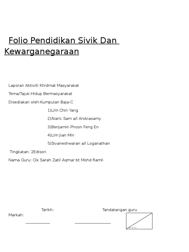 Progam sekolah · program motivasi. Diri, keluarga, sekolah, masyarakat, negara dan global. Ia bertujuan untuk membentuk seorang warganegara yang mengetahui hak. A sharing platform of english teaching materials. Bagi memastikan keberkesanan pelaksanaan pendidikan sivik, kpm telah menetapkan pendidikan sivik dilaksanakan selama satu jam pada minggu keempat setiap bulan dalam waktu mata pelajaran bahasa melayu, bahasa inggeris, pendidikan islam, pendidikan moral dan sejarah. Check 'sivik' translations into english. Posts about pendidikan sivik & kenegaraan written by ideasforenglish. Pendidikan sivik & kewarganegaraan tema 1: Malaysians try spm pendidikan sivik. Pencapaian kendiri unit 1 : Hak dalam keluarga nilai teras ; Mata pelajaran bm, bi, pi, pm. Pendidikan sepanjang hayat untuk pembangunan negara.